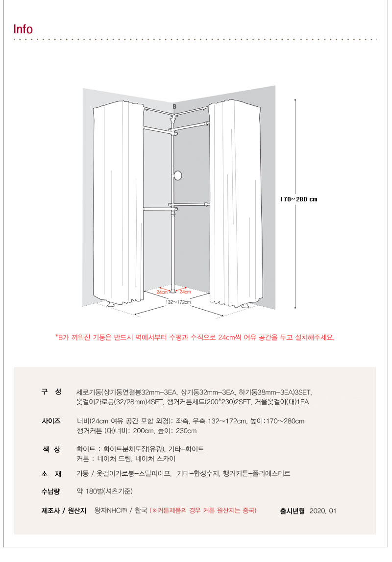 • 왕자 네이처 코너형 드레스룸 3P 밀폐기본형 행거