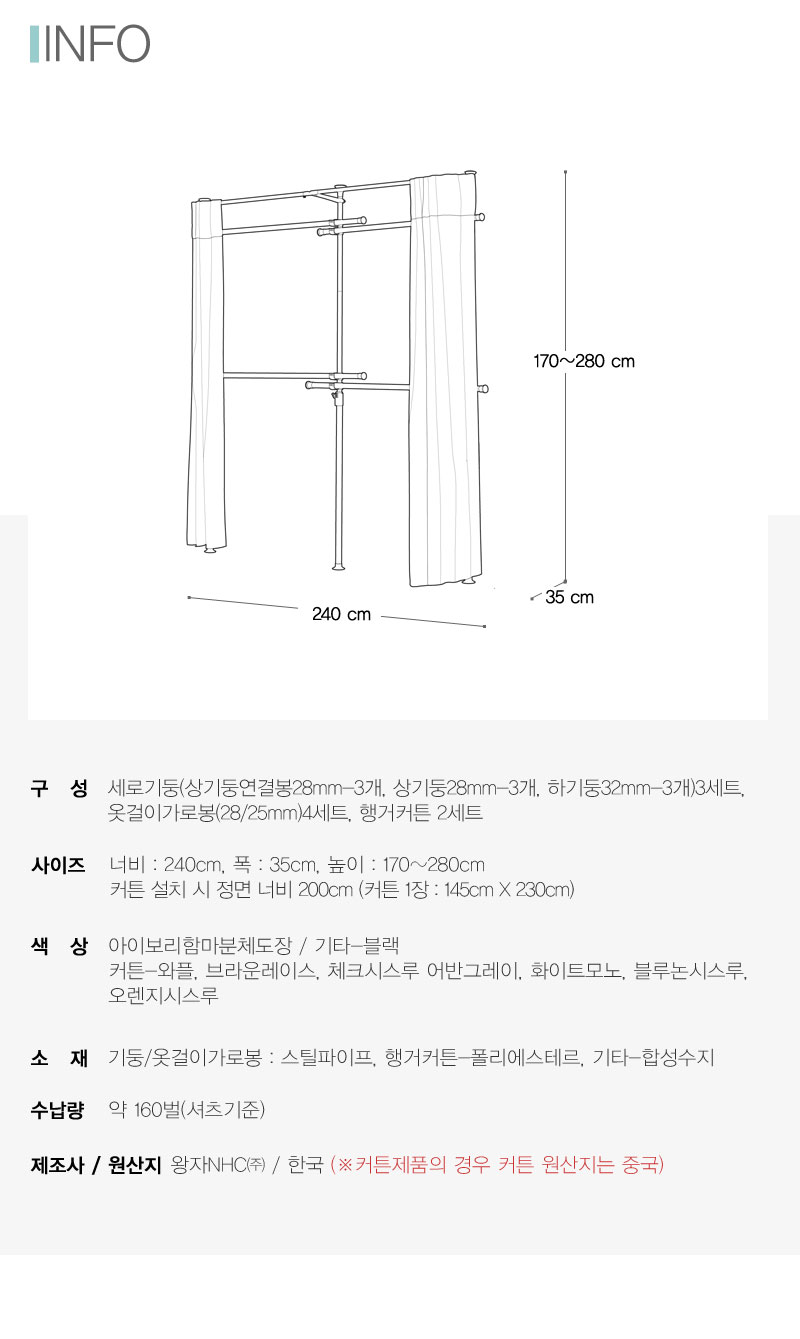 이미지 확대보기왕자 심플 4단 커튼 행거 선택형